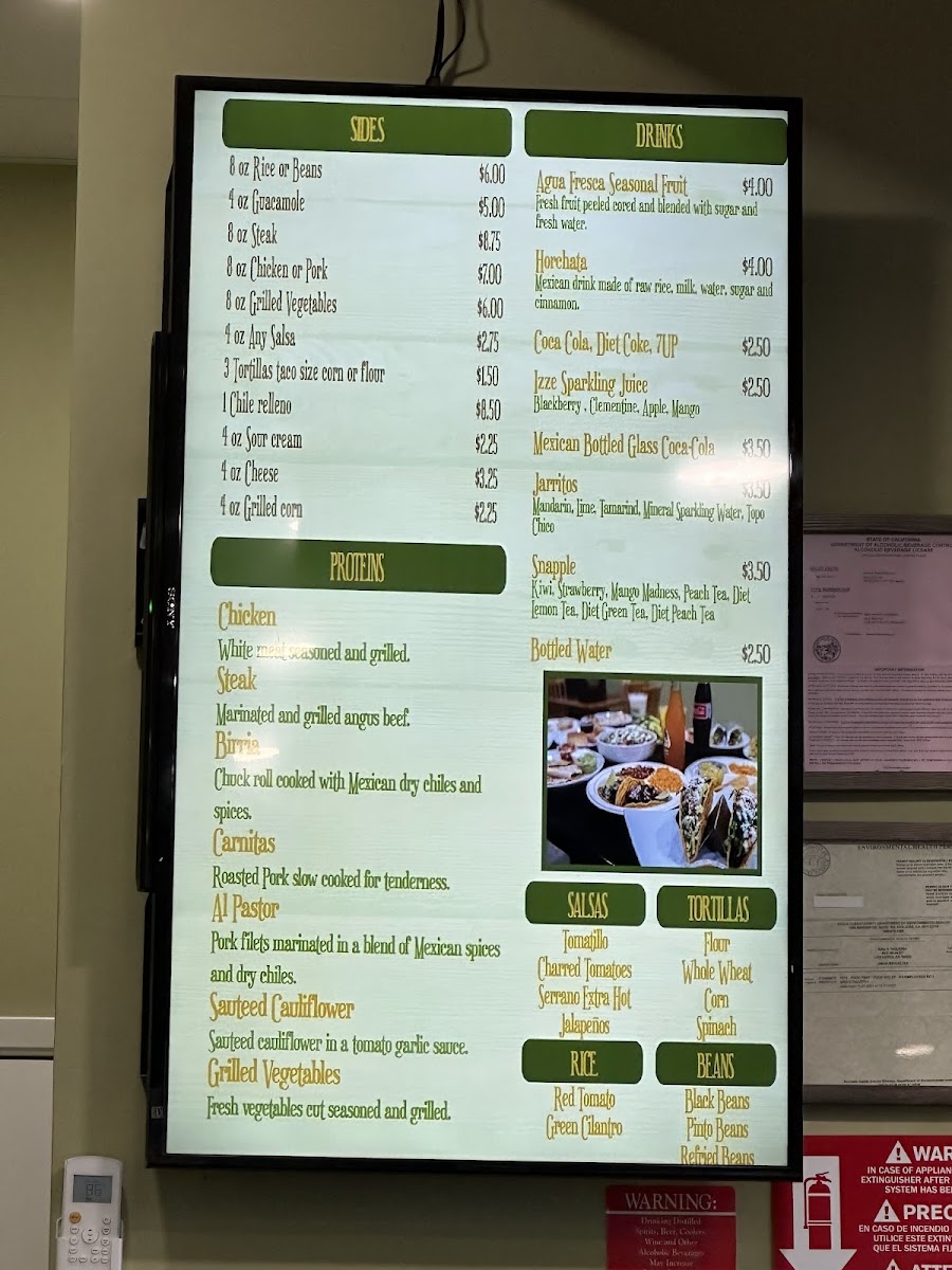 Savor grilled vegetables or sautéed cauliflower paired with beans, rice, cheese, fresh salsa, guacamole, and sour cream, all wrapped in a flour tortilla. Available in supreme, regular, or small sizes. Vegetarian: Yes. Vegan: Yes, if cheese and sour cream are removed. Gluten-Free: Yes, if served in a bowl or with a gluten-free tortilla. ESP: Disfruta de vegetales a la parrilla o coliflor salteada con frijoles, arroz, queso, salsa fresca, guacamole y crema agria, todo envuelto en una tortilla de harina. Disponible en tamaños supremo, regular o pequeño. Vegetariano: Sí. Vegano: Sí, si se eliminan el queso y la crema agria. Sin Gluten: Sí, si se sirve en un bowl o con una tortilla sin gluten.